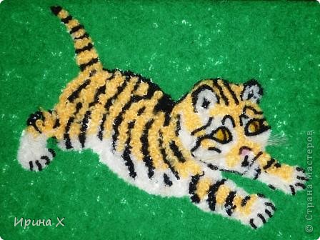Работу решила назвать"Тигрёнок в зелёной траве"
